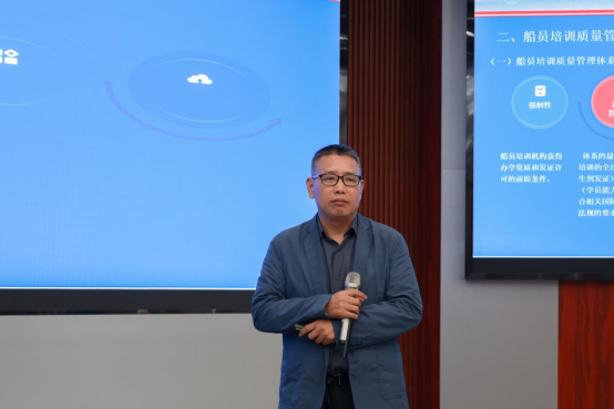 会议由教务处副处长、质管办副主任韩翔希主持。本次宣贯会特邀学校党委常委、副校长闫松银和船员培训中心副主任甘兆斌分别进行专题宣讲。
