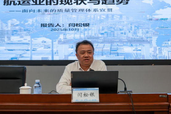 学校党委常委、副校长闫松银围绕《航运业发展现状与趋势》主题,从航运业及船员的战略地位、航运业现状、航运发展趋势以及对船员教育与培训的思考等四个方面系统地对全球航运业的现状与趋势进行深度解读。他强调,质量管理体系是保障船员培训工作规范化、标准化、国际化的生命线,全体受控人员必须从思想上高度重视,从行动上严格落实,将体系要求内化于心、外化于行,为交通强国、海洋强国战略培养具有国际竞争力的高素质航海人才。