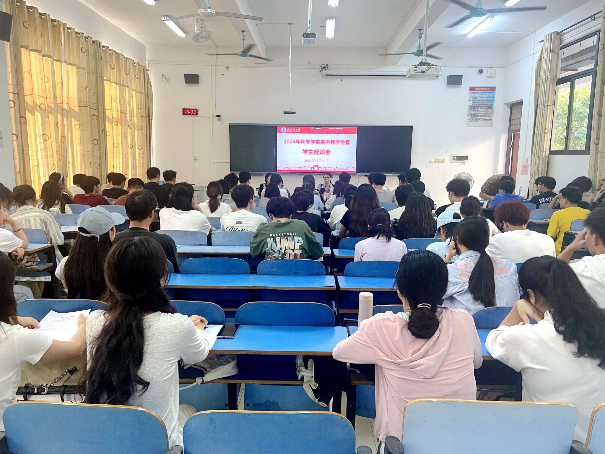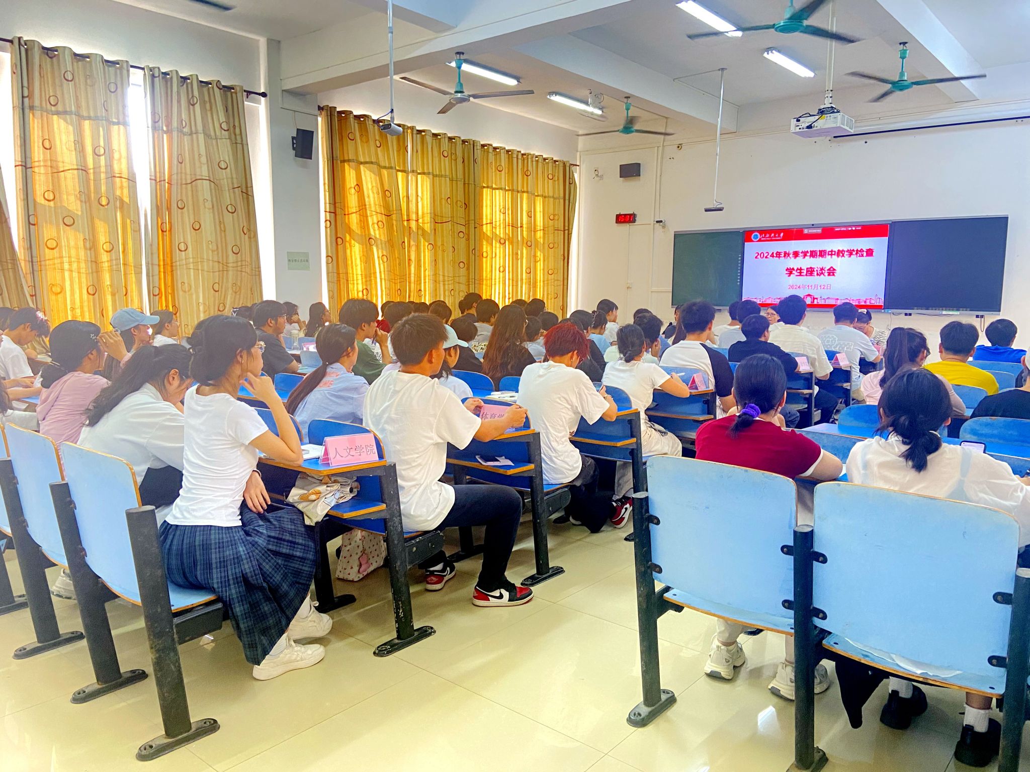 为了解本学期教学运行状况,及时发现、研究和解决教学过程中存在的问题,不断提高教学质量,教务处于11月12日下午在11-201教室召开了2024年秋季学期期中教学检查学生座谈会。教务处副处长郑韵英,学校教学督导周文红、井燕老师,教务处工作人员及各学院各专业的学生代表参加了座谈会。座谈会由郑韵英副处长主持。