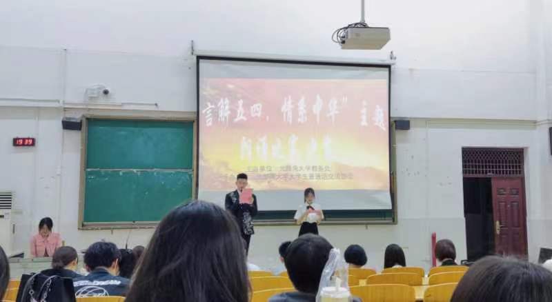 "言解五四,情系中华"为主题的演讲比赛于5月14号晚在12-205教室举行取得圆满结束,本次活动由教务处主办、北部湾大学大学生普通话交流协会承办。