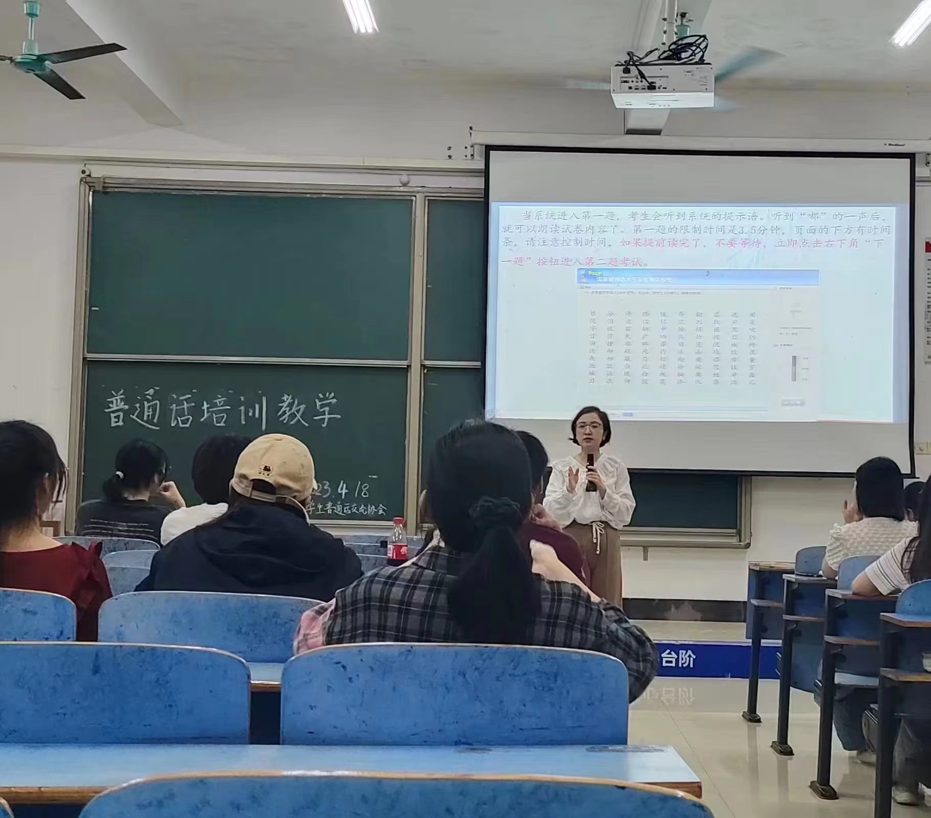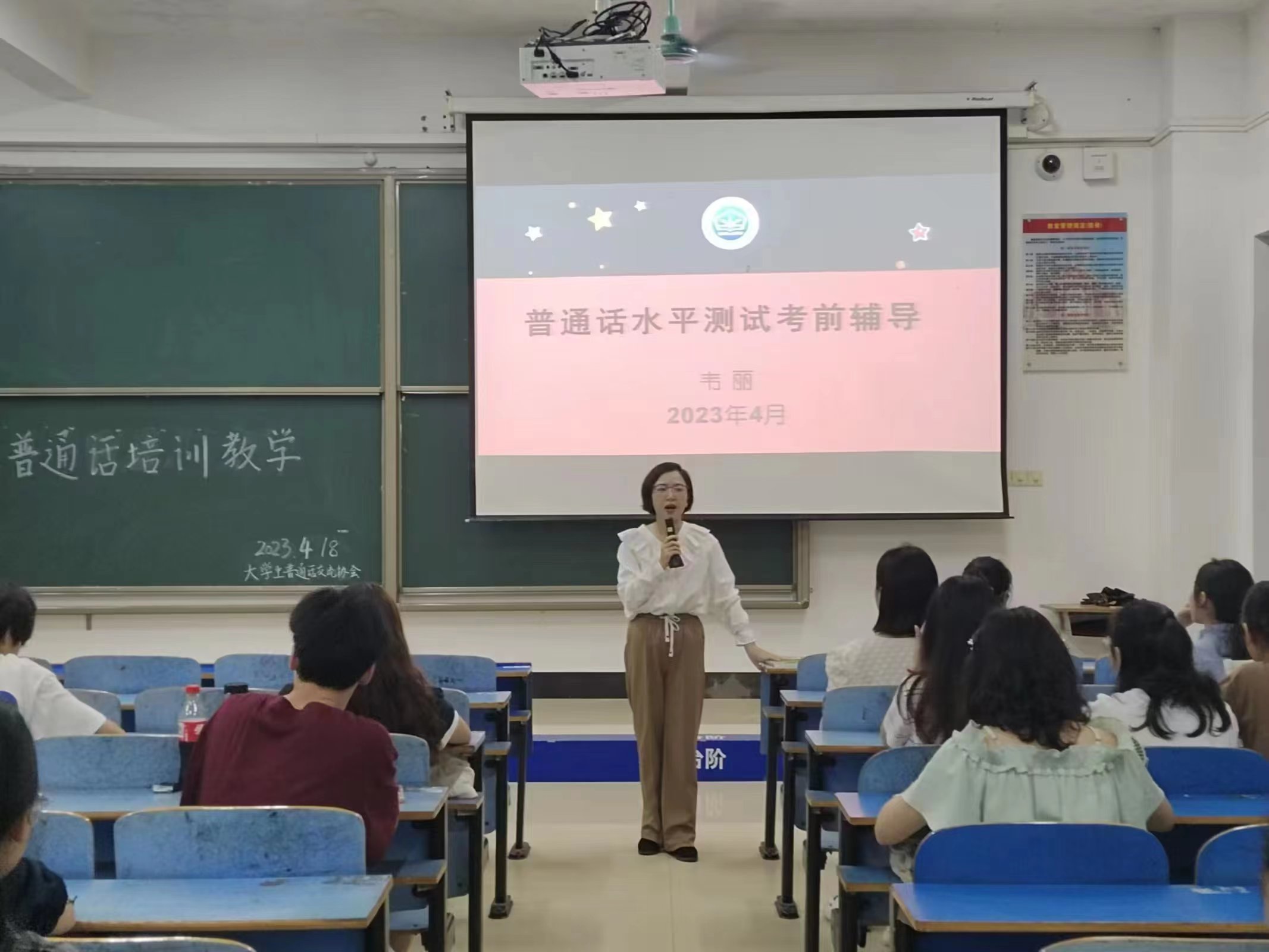 2023年4月19日,北部湾大学2023年春季学期普通话水平测试会员考前培训在12—206教室成功举办。本次培训会由我校省级普通话测试员、学生工作处资助工作科韦丽科长开展教学。本次培训会紧紧围绕着普通话考试答题技巧和注意事项展开。