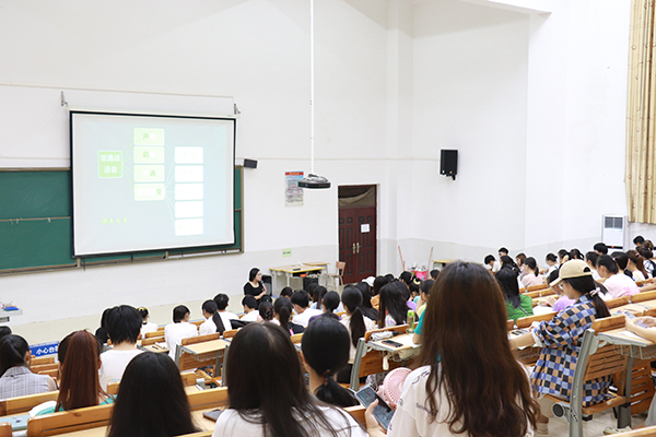 韦丽结合多年工作经验为同学们详细解读了考取普通话水平测试等级评分细节及测试流程,在测试过程中要注意声母与声母之间、韵母与韵母之间读音的区别,四个声调的文字在搭配不同文字之后的读音变化等方面的问题。她强调,普通话水平测试虽然不同于其他考试,但考前准备还是必不可少的,看似只要会说就可以通过的一门考试,实则也蕴含很多的技巧。