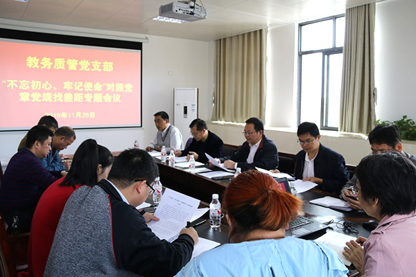 11月26日上午,教务质管党支部在行政楼201会议室召开了“不忘初心、牢记使命”对照党章党规找差距专题会议。学校主题办指导员林惠嘉同志应邀参加了会议。