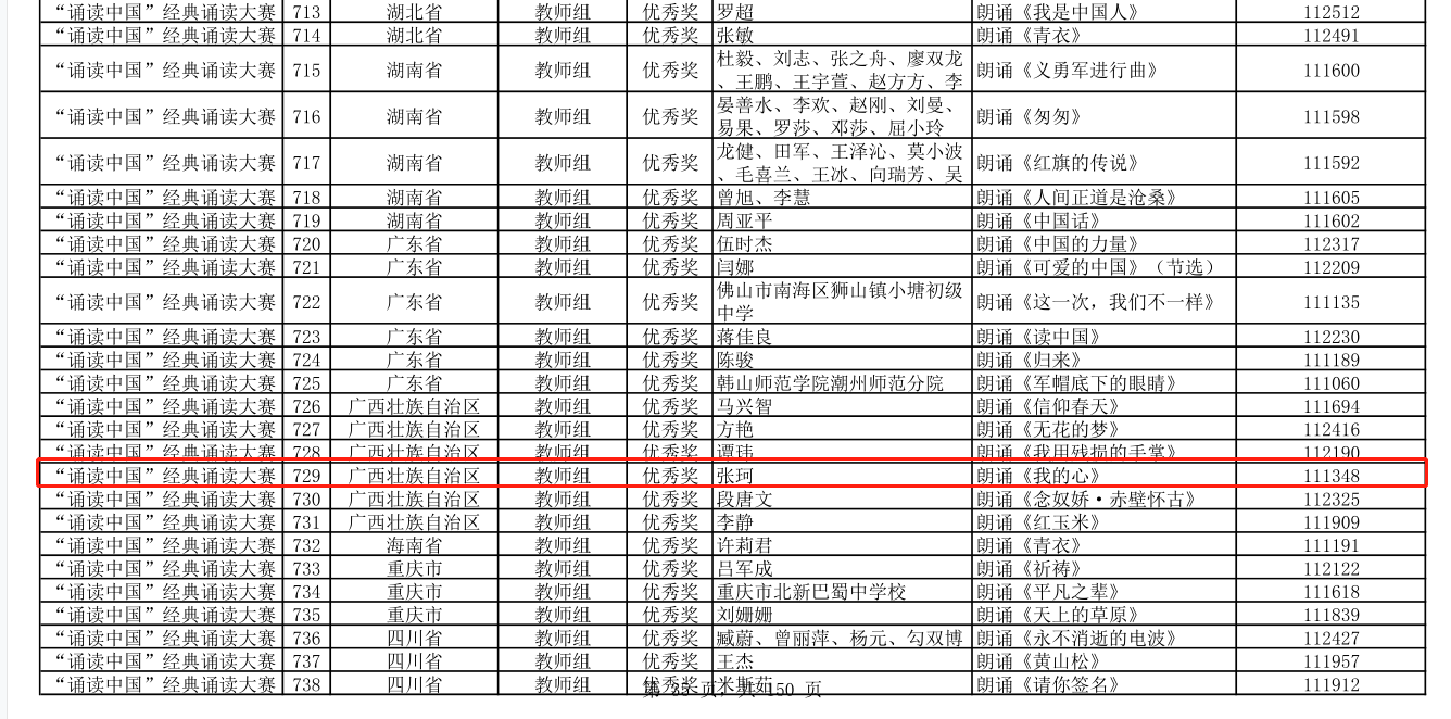 第二届中华经典诵写讲大赛“诵读中国”经典诵读大赛教师组获奖名单(部分)