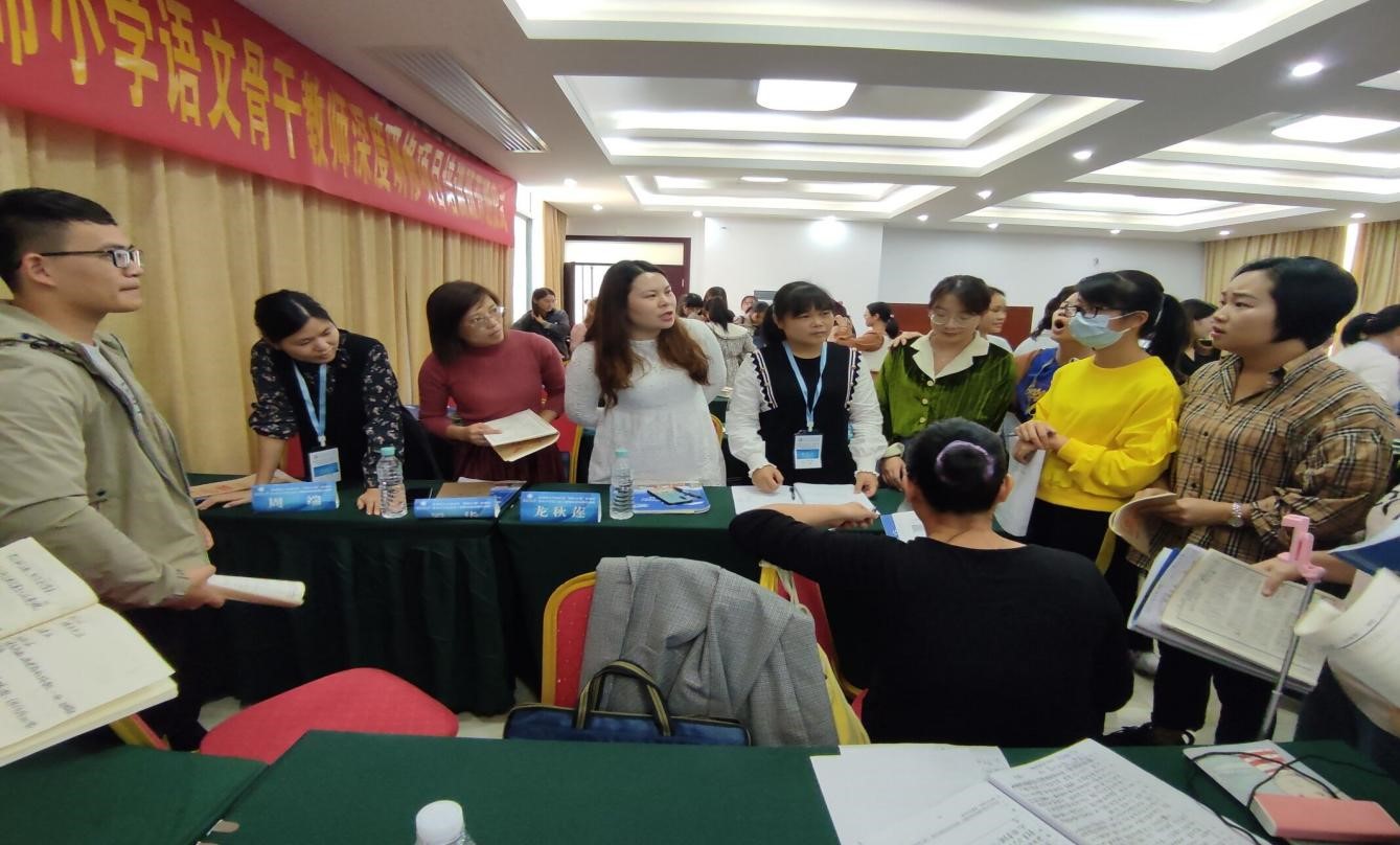 11月1日下午,2021年“国培计划”钦州市统筹农村骨干教师能力提升培训项目——小学语文骨干教师深度研修培训班在钦州市怡程酒店举行开班仪式。钦州市教育局副局长田茂群、北部湾大学教务处处长钟其鹏、北部湾大学教务处副处长王玉军、钦州市教育局人教科副科长阳丁玉出席本次开班仪式,开班仪式由王玉军副处长主持,北部湾大学国培办负责人莫春镝老师、北部湾大学教育学院施日梅老师和培训班班主任韦莹老师,以及来自钦州市各地的小学语文骨干教师参加本次开班仪式。
