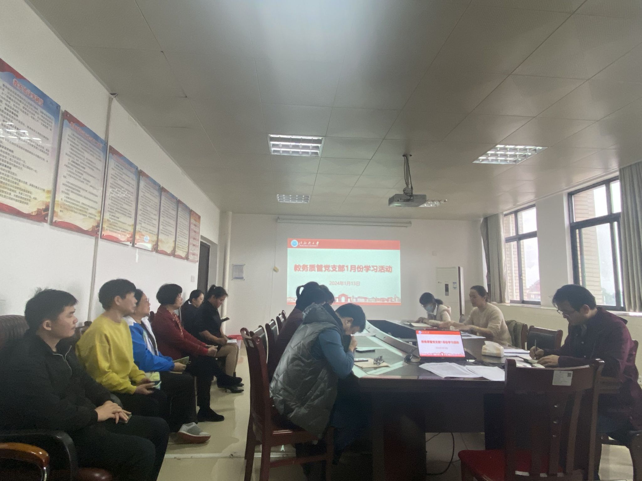 2024年1月13日下午,教务质管党支部在行政楼201会议室召开全体党员2024年1月份学习教育会,党支部书记王柏玲同志主持会议。