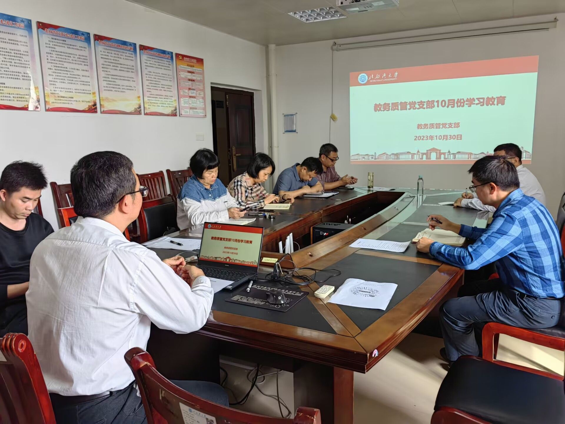 10月30日下午,教务质管党支部在行政楼201会议室召开全体党员10月学习教育会,党支部书记钟其鹏主持会议。