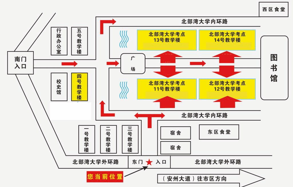 1.独自驾车参加考试的校外考生凭准考证驾车从南门进校,入校后请按照现场工作人员引导致指定区域停放,其他非考生人员(无准考证的陪考人员等)一律不得入校。