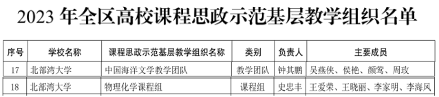 图一 2023年全区高校课程思政示范课程、课程思政教学名师和团队名单截图