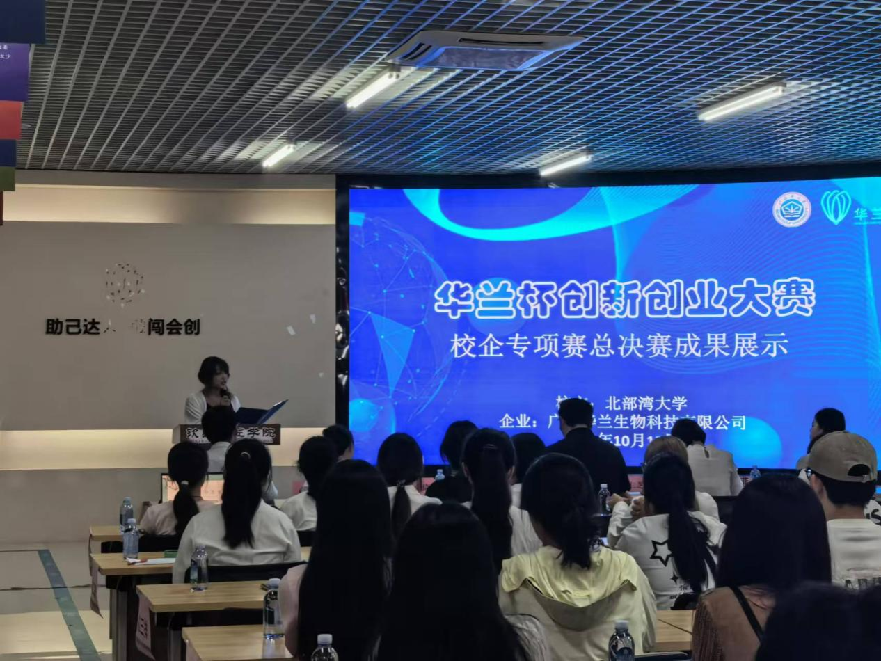 为促进产教融合,促进学生了解产业发展状况,培养学生解决产业发展问题的能力,汇集校内外力量进一步推进我校创新创业教育,10月18日,我校携手广西华兰生物科技有限公司在大学生创业园赋能训练场联合举办中国国际大学生创新大赛(2024)北部湾大学选拔赛“华兰杯”校企专项赛现场总决赛。我校教务处副处长、创新创业学院副院长吴炳俊、广西华兰生物科技有限公司总经理熊相韬、相关项目指导老师、项目组员及创新创业联合会学生代表参加了活动。
