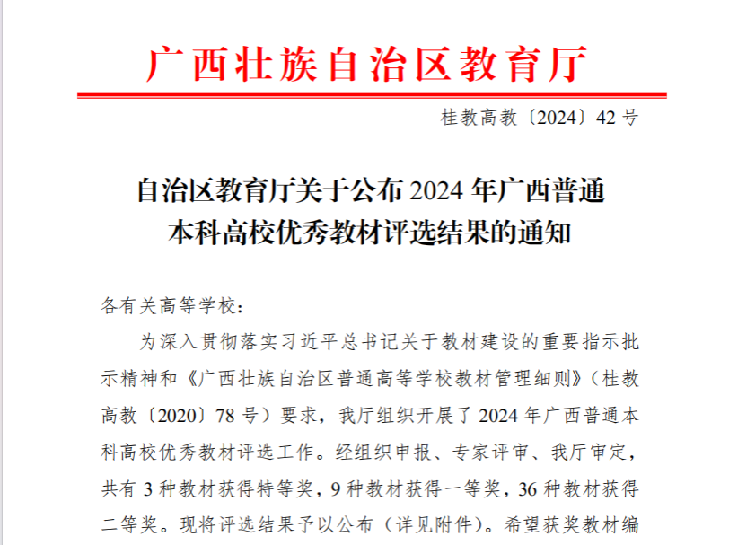 2024年广西普通本科高校优秀教材评选结果名单截图