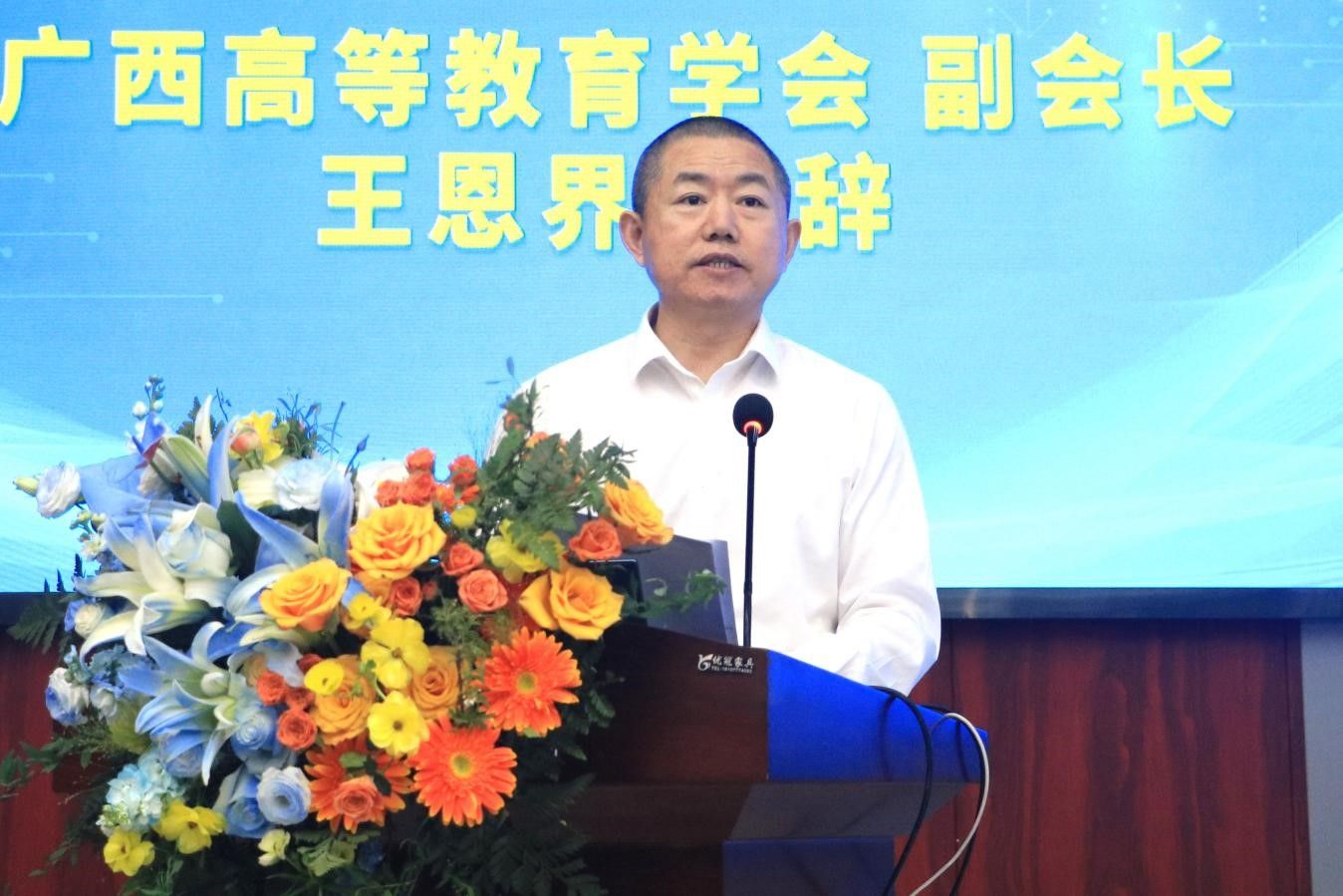 广西高等教育学会副会长王恩界在开幕式讲话中针对生成式AI技术重塑教育生态的现状提出三点建议与希望:一是以育人使命为核心,推动AI技术与人才培养全流程深度融合,构建智慧教育新范式;二是分层分类提升教师数字素养,建立“诊断-赋能-实践”培育体系,强化技术赋能教学实效;三是创新“学科交叉+双师协同”育人模式,探索拔尖人才培养的广西方案。他呼吁全区高等教育工作者把握技术机遇,深化教学改革实践,共筑区域高等教育高质量发展新格局,为教育强国建设贡献智慧力量。