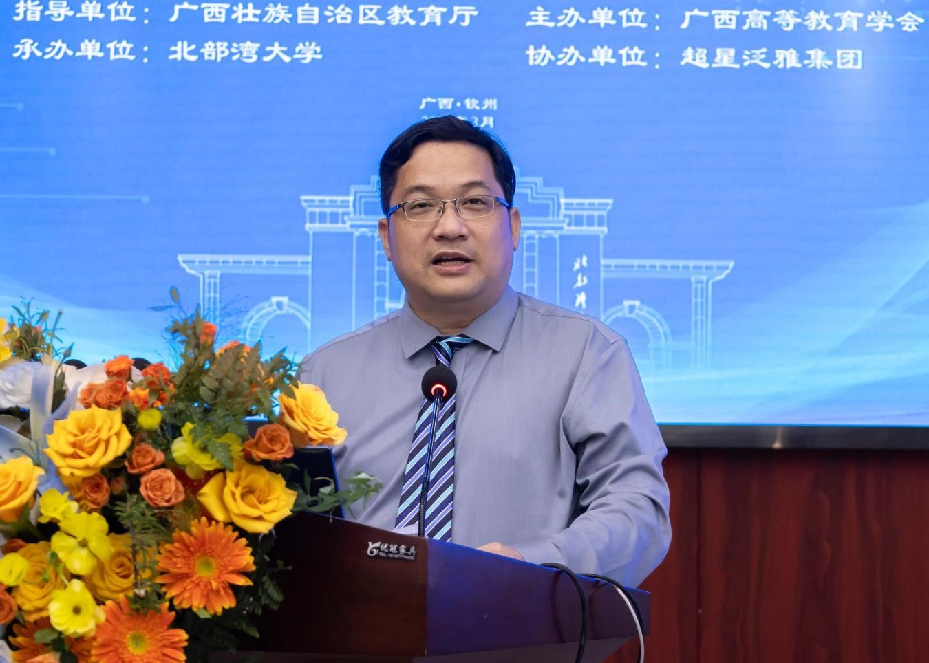 2025年3月28日,由广西高等教育学会主办、北部湾大学承办、超星泛雅集团协办的《AI引领高等教育教师发展新方向暨高校教师数字素养提升研讨会》在北部湾大学隆重召开。本次会议聚焦人工智能时代高等教育变革与教师发展,吸引了区内外63所本科及高职院校的近400名教师现场参会,线上直播观看量超3000人次。研讨会由北部湾大学教务处副处长吴炳俊主持。