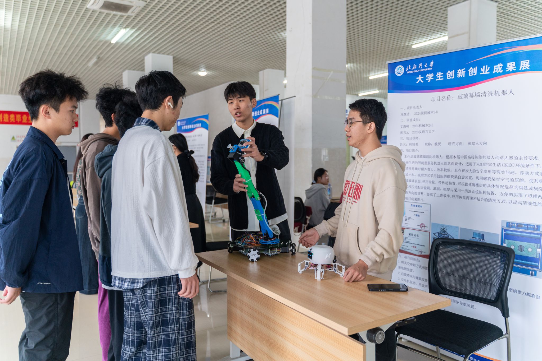 参展学子热情拉满,把项目创意、技术细节讲得生动又透彻;参观师生听得入迷、问得热烈,思维碰撞的火花此起彼伏。这场成果展,不只是创新才华的“秀场”,更是经验分享的“加油站”,点燃了师生的双创热情。