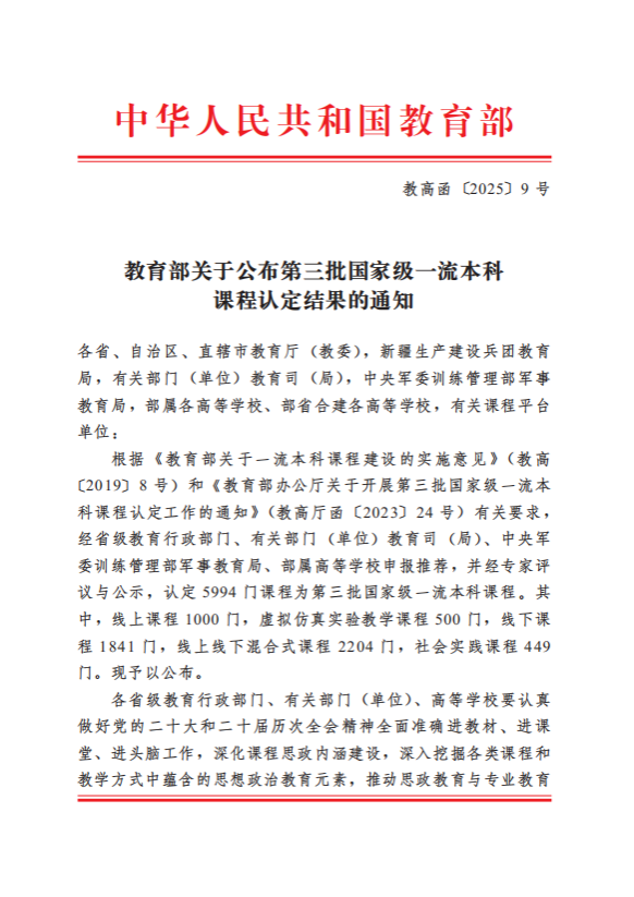 国家级一流本科课程的丰硕成果,源于我校长期以来对本科教学质量的坚守与深耕。此次获评是教育部对我校教学改革成果的高度认可,更是对我校未来课程建设的鞭策与激励。下一步,学校将以此为契机,充分发挥国家级一流本科课程的示范引领与辐射带动作用,持续推进课程内容迭代、教学模式创新与评价机制优化,着力打造更多具备高阶性、创新性与挑战度的“金课”。同时,深化产教融合、科教融汇,推动学科交叉融合,全面提升课程内涵与育人实效,不断增强学校核心竞争力。