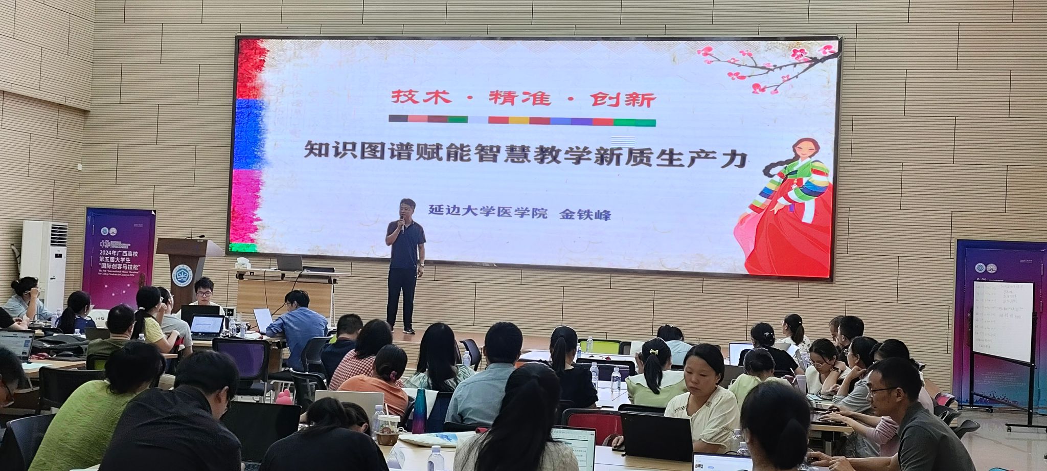 工作坊紧扣OBE(Outcome-Based Education,基于成果导向教育)教学理念,由延边大学魏志方教授主讲。魏教授具有丰富的教学设计和教学技能培训经验,曾指导我校多位教师在各类教学竞赛、一流课程申报中取得优异成绩。在培训过程中,魏教授结合实际案例进行深入剖析,参培教师积极参与互动,现场气氛热烈。延边大学金铁峰教授作为工作坊的校外培训团队成员以“知识图谱赋能智慧教学新质生产力”为题分享了AI构建智慧教学新生态的课程建设和教学创新参赛经验。