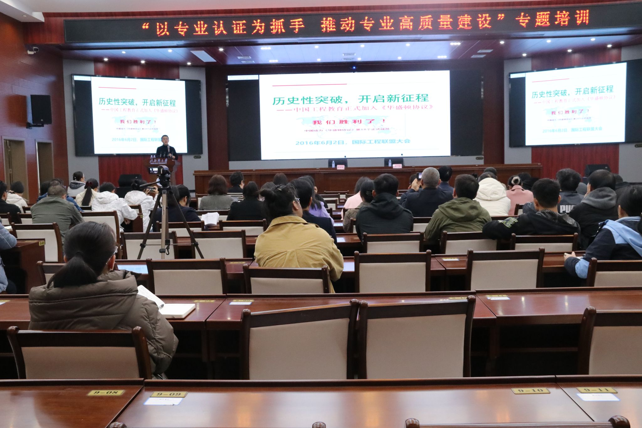 2025年1月9日下午,在学校办公楼一楼报告厅组织“以专业认证为抓手 推动专业高质量建设”的专题讲座,响应我校深化人才培养体制机制改革推动学校高质量发展意见,进一步加深教师对专业认证重要性的认识,提升专业建设质量,助力学校教育教学水平的全面提升。