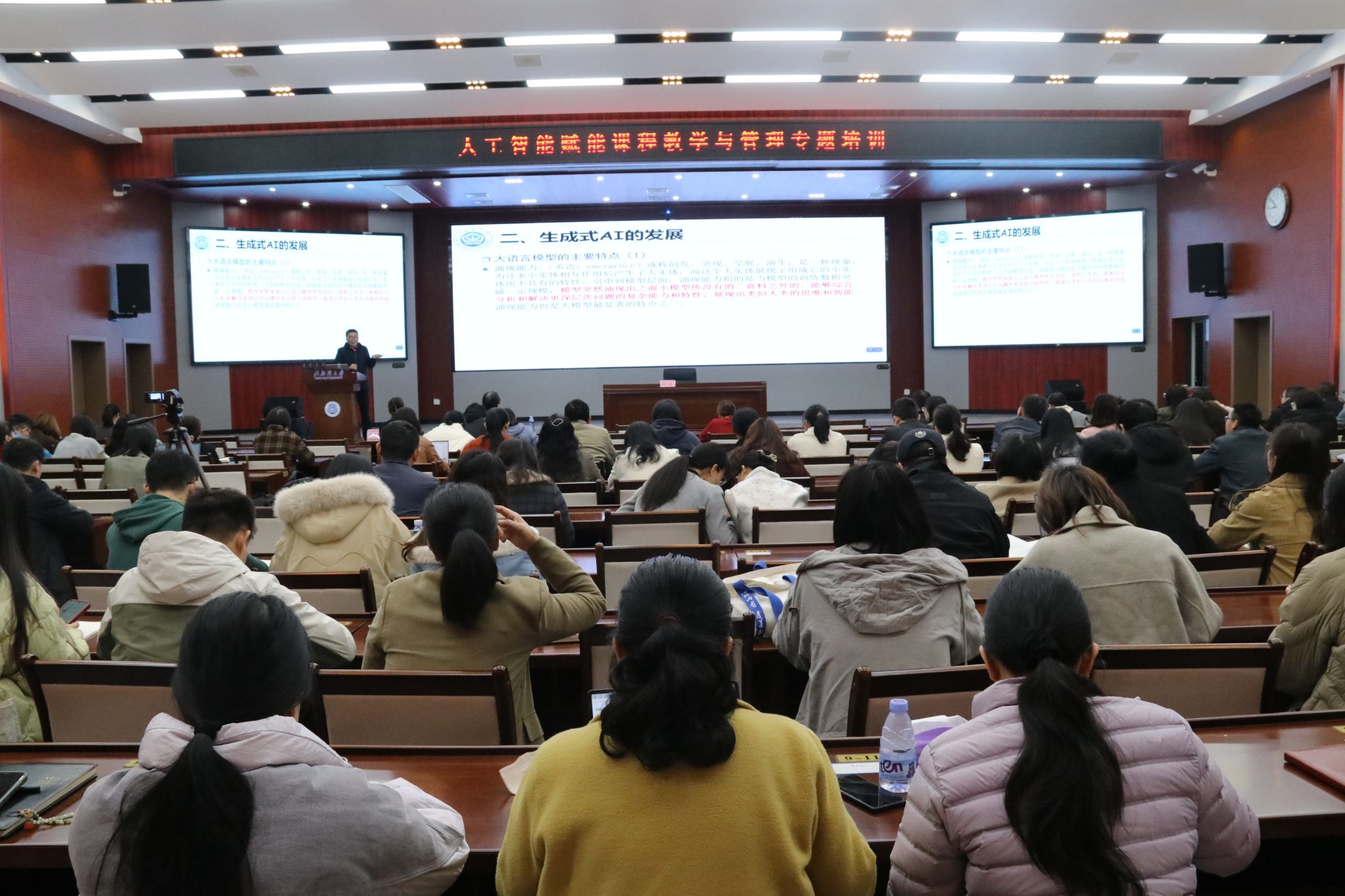 3月11日,我校在行政楼报告厅成功举办了“人工智能赋能课程教学与管理”专题培训。本次培训由学校教务处、教师发展中心与电子与信息工程学院联合策划并成功举办,旨在深化人工智能技术与教育教学、管理服务的融合创新,提升教学质量与管理效能。培训分为行政专场和教学专场,分别由电子与信息工程学院的徐涛博士和刘秀平博士主讲,吸引了全校300多名行政、教辅人员和专任教师参与本次培训。