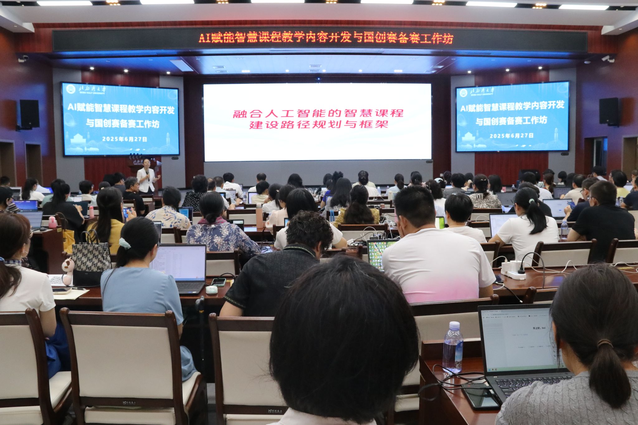 2025年6月26日至27日,学校在办公楼101报告厅举办AI赋能智慧课程开发与国创赛备赛工作坊。南宁师范大学师园学院22名教师与我校350名教师共同学习人工智能技术在教学改革与创新创业竞赛中的应用。