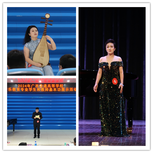 本次展示活动于2024年11月22日至24日在玉林师范学院举行。通过激烈的角逐,我校获本科组学校团体奖二等奖;多名学生和老师获多项个人奖。其中,彭丹、李金玲同学荣获本科组个人全能二等奖,李晨雨同学荣获个人全能三等奖;彭丹同学获戏曲单项二等奖,李晨雨同学获教学展示(微课)单项三等奖;卢丽萍老师荣获个人全能一等奖,并在审美和人文素养展示单项奖中斩获一等奖,技能展示单项奖中获二等奖;解巍老师荣获个人全能二等奖及技能展示单项奖一等奖;李佳蓉老师荣获个人全能三等奖及技能展示单项奖三等奖。