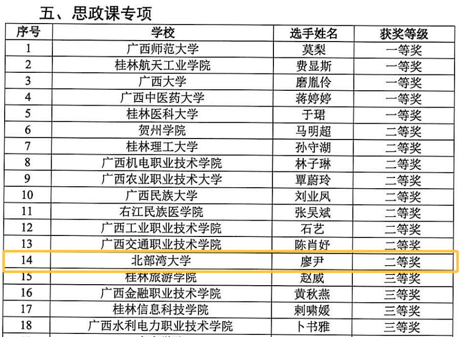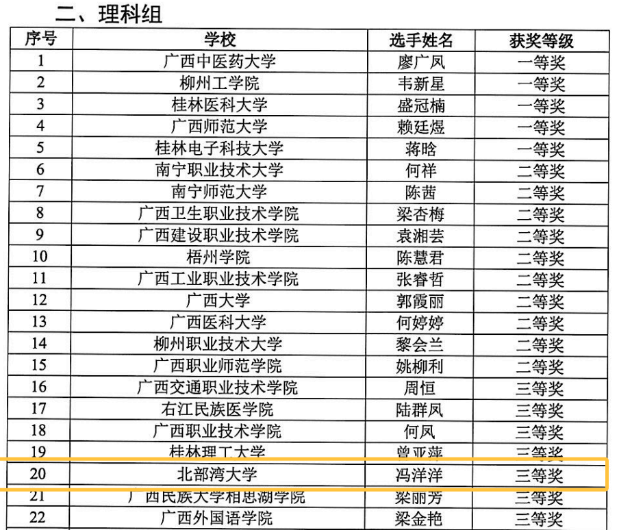 近日,第十一届全区高校青年教师教学竞赛获奖名单正式公布,我校共有三名教师获奖。其中水利与海岸工程学院张蕾蕾老师荣获工科组一等奖,马克思主义学院廖尹老师荣获思政组二等奖,资源与环境学院冯洋洋老师荣获理科组三等奖。