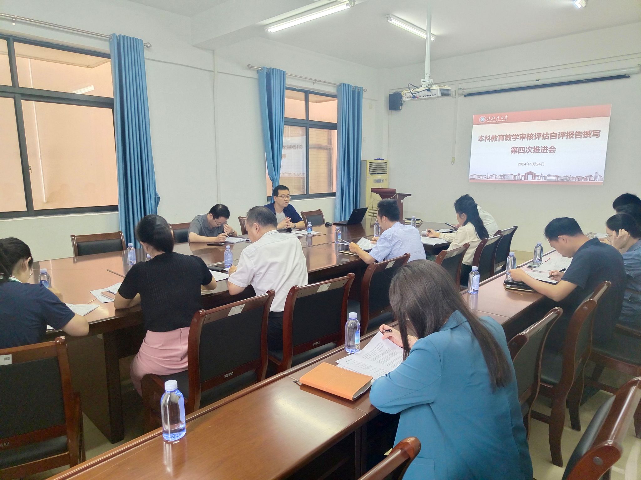 9月24日上午,学校在办公楼102会议室召开本科教育教学审核评估自评报告撰写工作第三次推进会,会议由付满副处长主持,尹艳镇副校长出席并发表讲话,各工作组副组长和撰写员参加了此次会议。